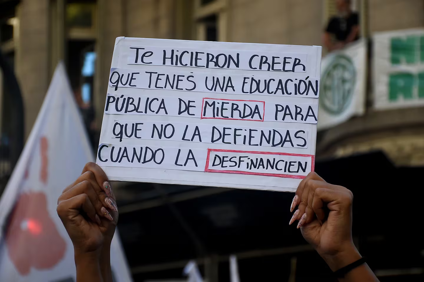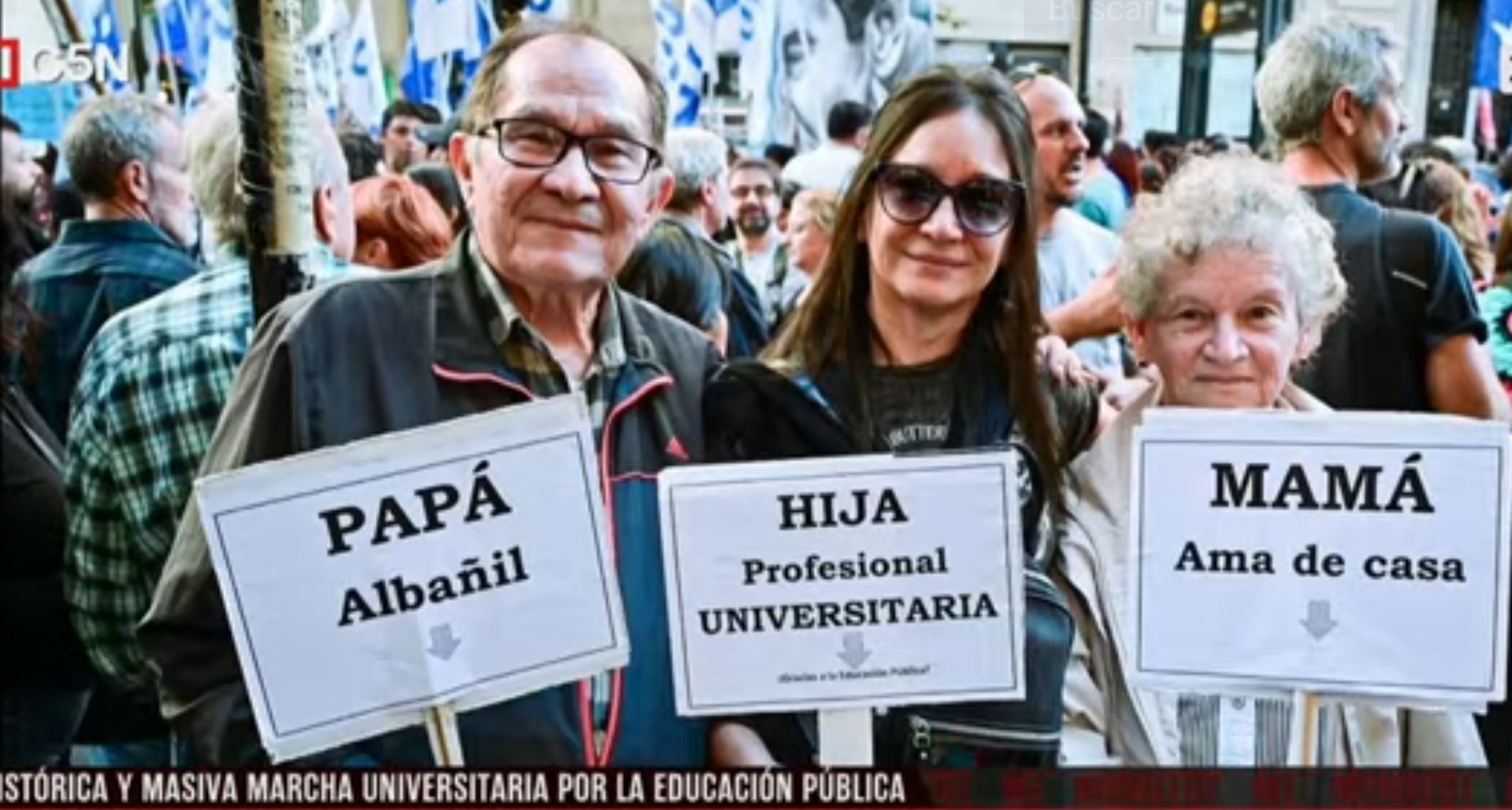 Las imágenes se nutrieron de carteles, banderas y libros en distintos puntos del país, donde confluyeron varias generaciones que se educaron en la Universidad de Buenos Aires, y «por una universidad para todos y no que sea un privilegio para quien la pueda pagar».