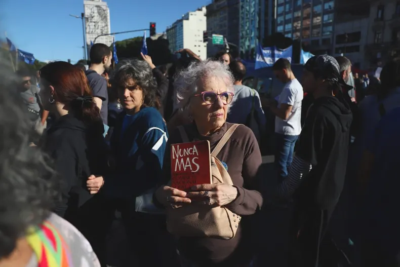 Entre las consignas que se escucharon se remarcó que «nos convocamos porque la educación pública sea un derecho», mientras sostuvieron con los libros en la mano: «Vengo con la Constitución en la mano porque es lo que este presidente se está llevando puesta».
